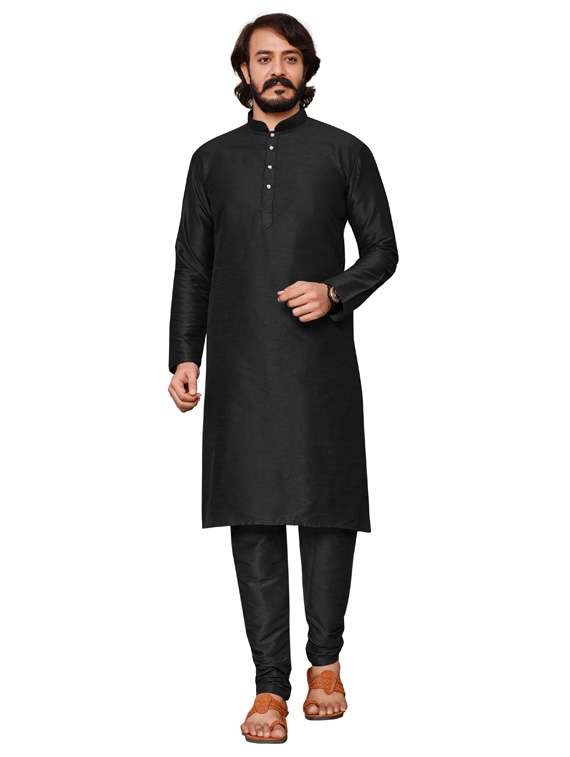 Black Cotton Silk Solid Ethnic Wear Mens Kurta set