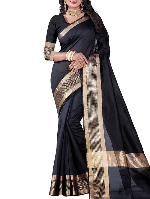 contrast border woven saree with blouse