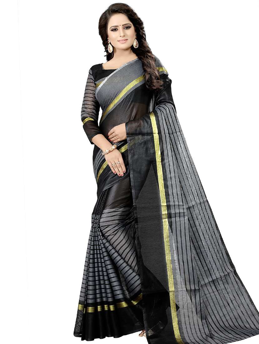 - » women's stripes black colored saree with blouse
