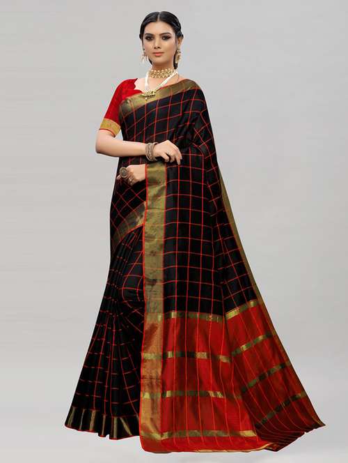 women's checks black colored saree - 19427001 - Very Small Image - 1