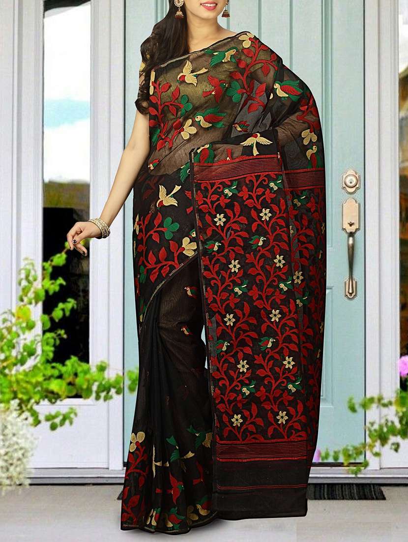 - » black cotton silk jamdani saree