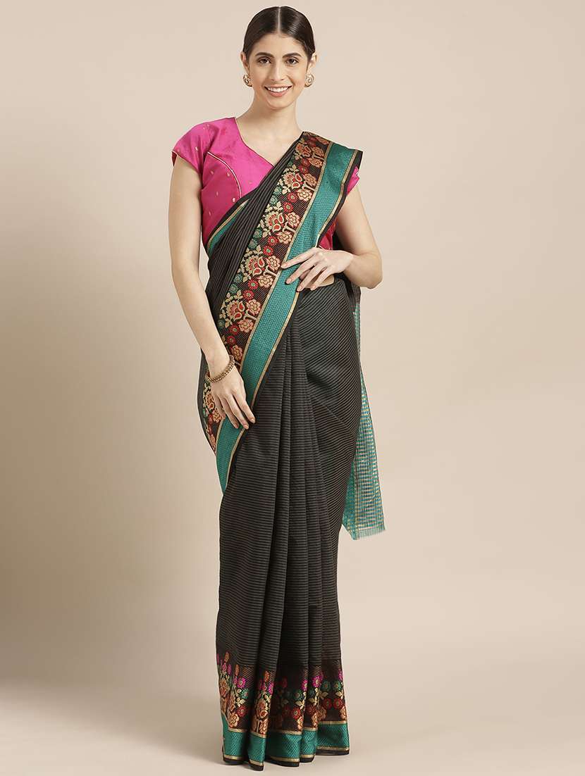 - » women's stripes black colored saree with blouse