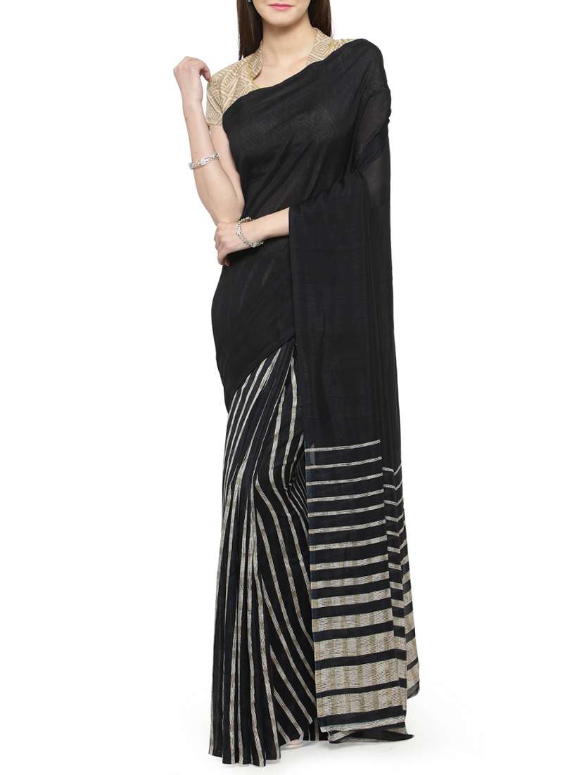 black silk printed saree with blouse