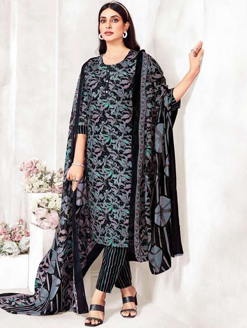 • Find gorgeous sets of ethnic wears in trending designs in black colors suitable for casual wear of occasions.