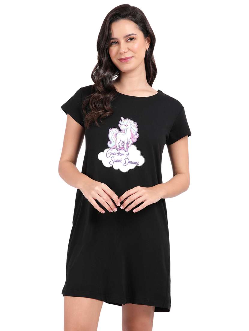 - » women printed round neck sleepshirt