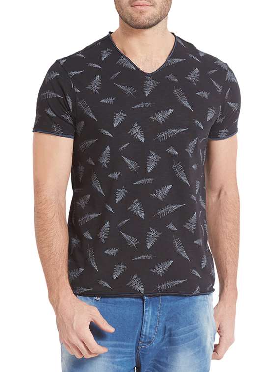 black cotton all over print t-shirt