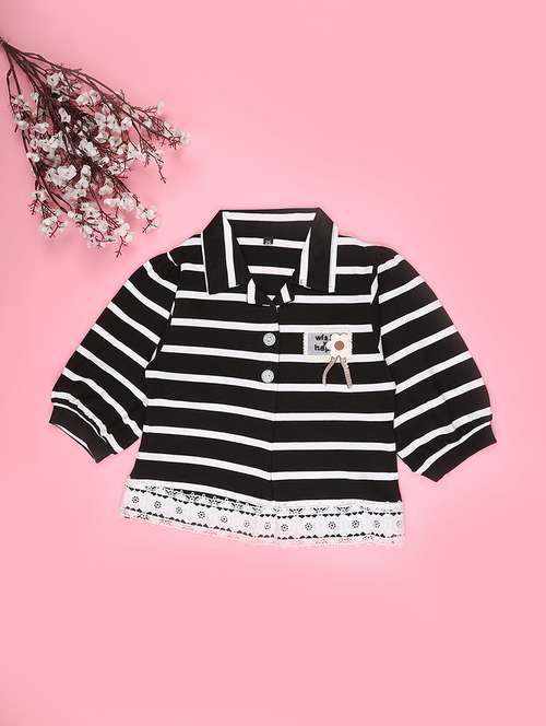 girls striped collared long sleeve top