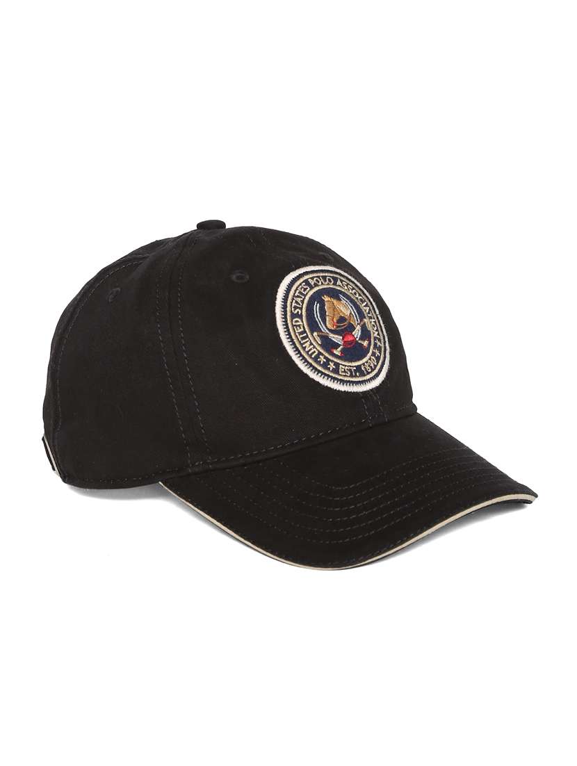 black appliqued cotton twill cap