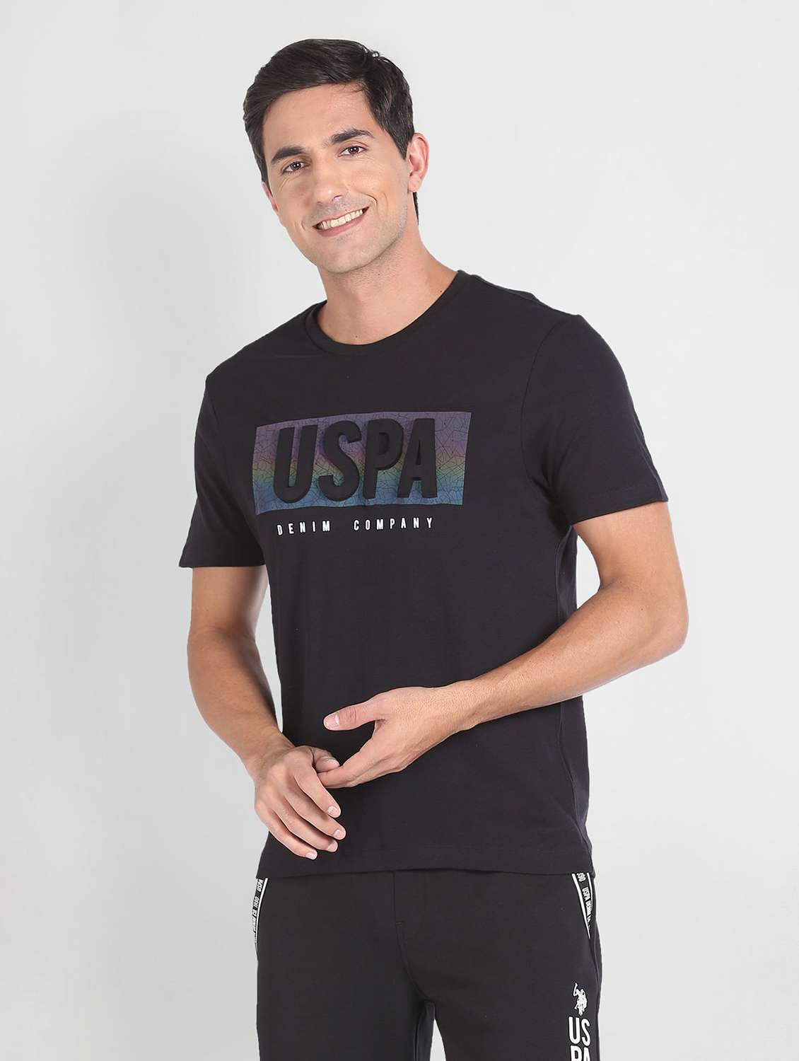 black cotton chest print tshirt - 20543770 - Very Small Image - 1
