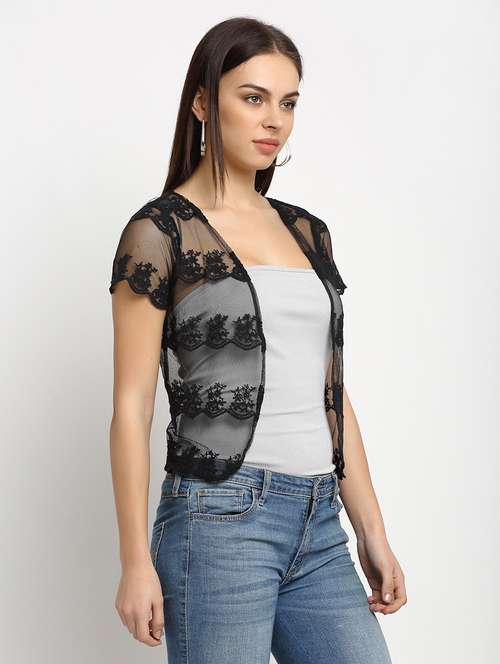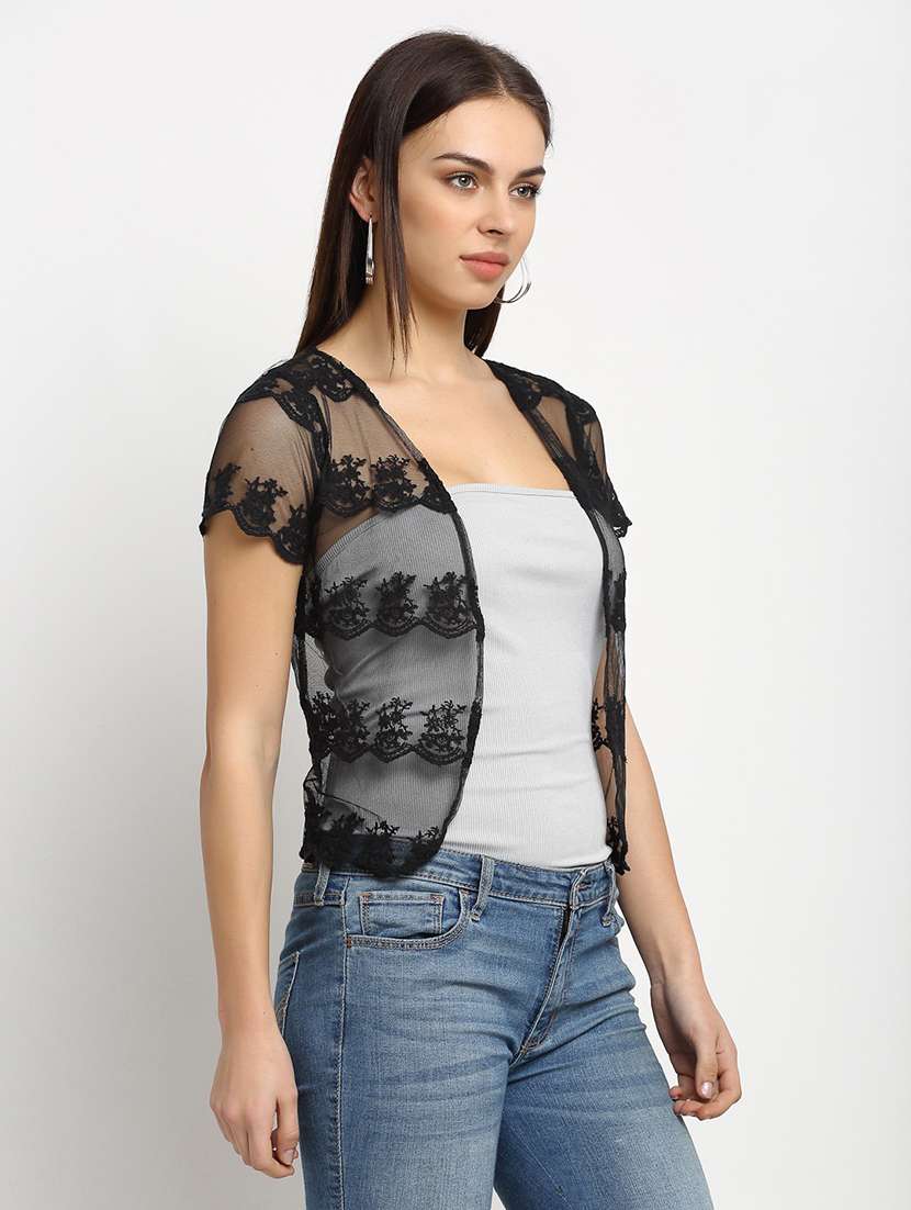 - » women solid lace detailed shrug