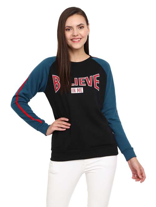 - Recreate your winter style with the all new frisky design options of sweatshirts available in black shades and hues to brighten up the chilly days.