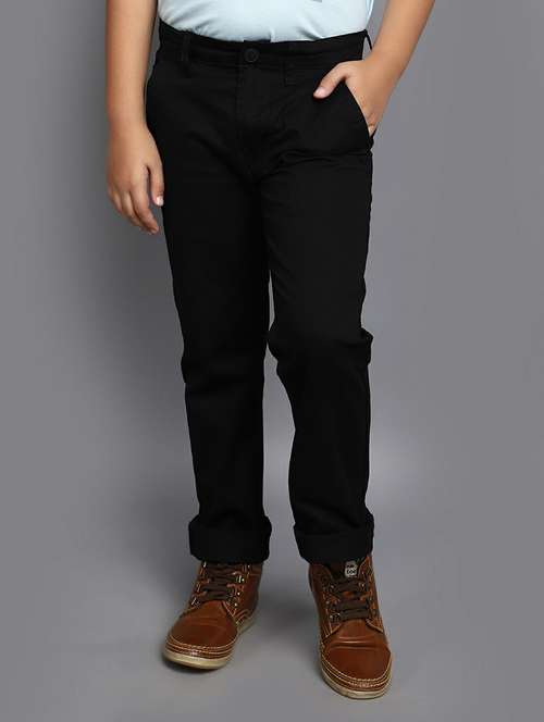 boys solid black chino trousers