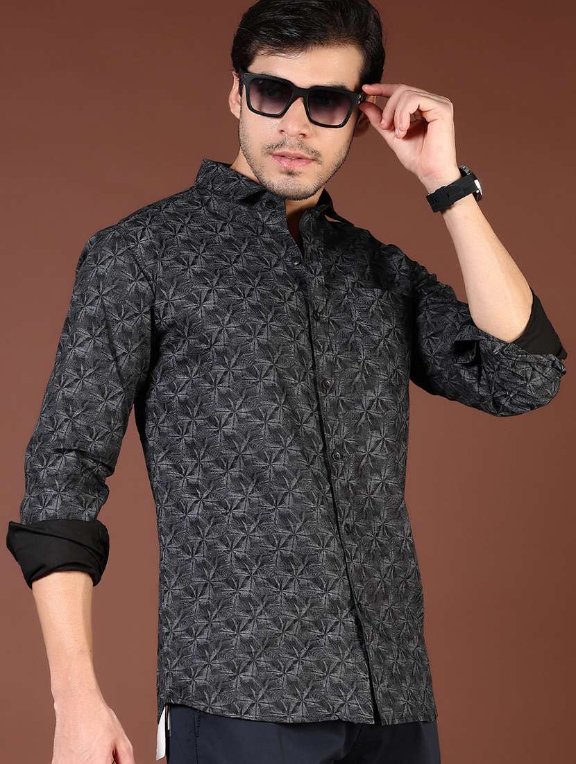 men printed long sleeve regular fit casual shirt