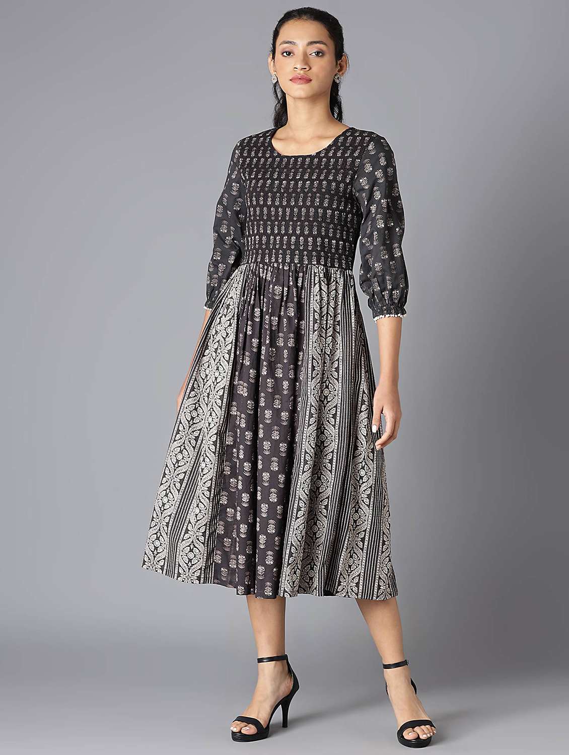 - » black floral flared ethnic dress