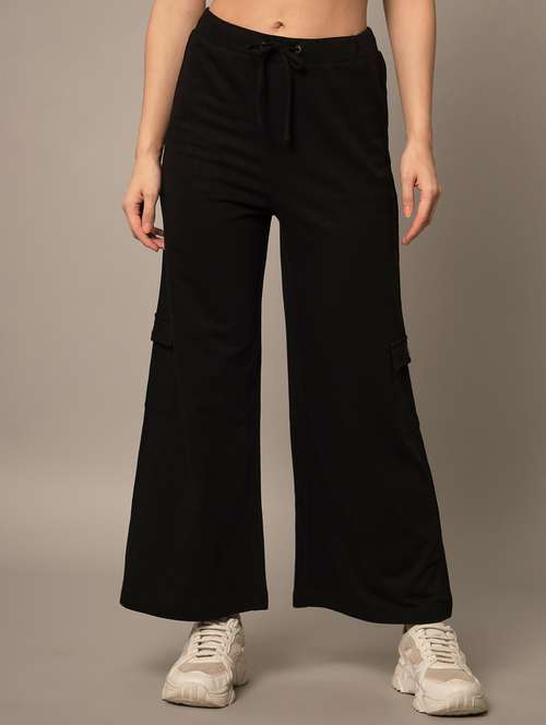 black cotton wide leg track pant