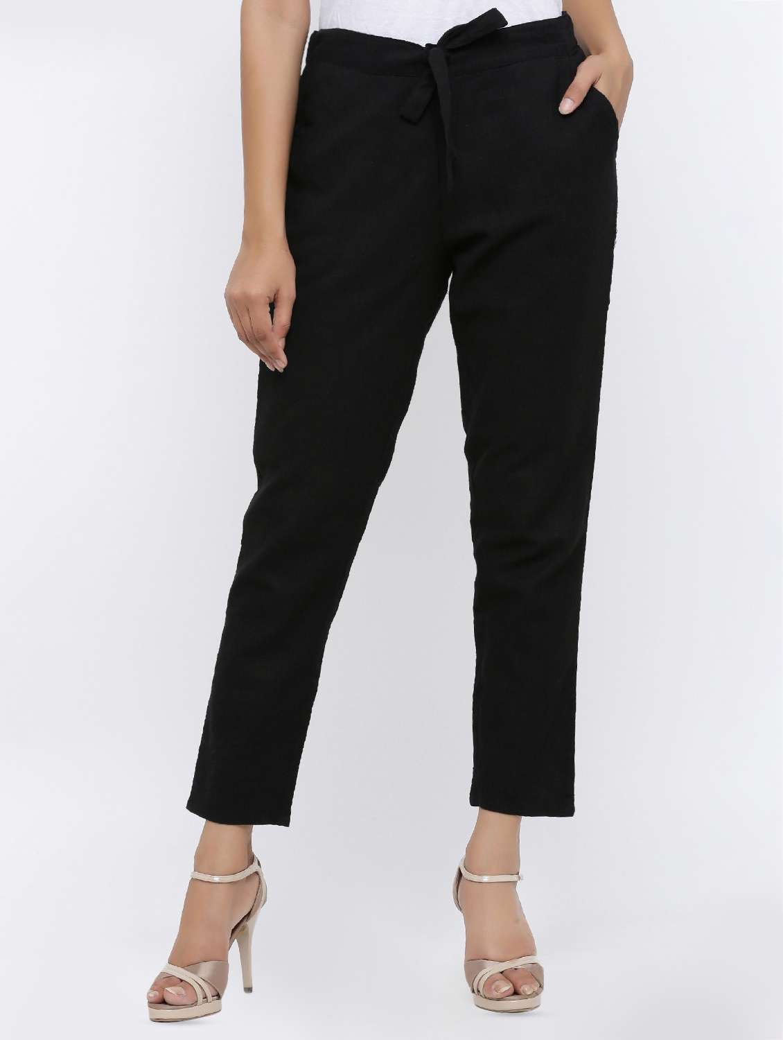- » tie front solid cigarette pant
