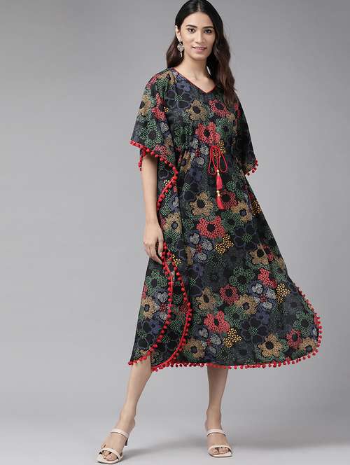 - » v-neck printed a-line dress