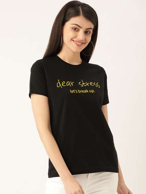 women's chest print round neck t-shirt - 19697219 - Very Small Image - 1