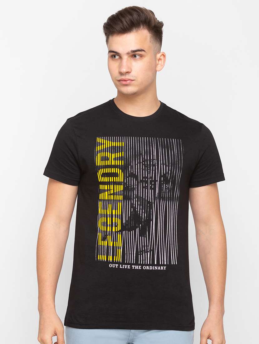 black chest-printed t-shirt