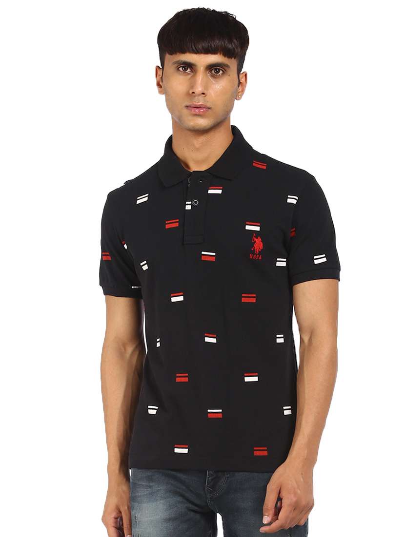 black printed polo t-shirt
