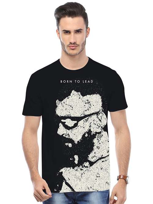 - » black printed cotton blend regular t-shirt