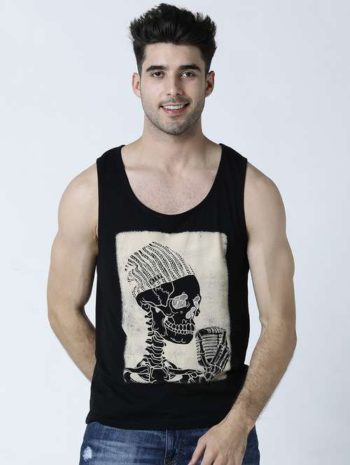 - » men scoop neck front print sleeveless t-shirt