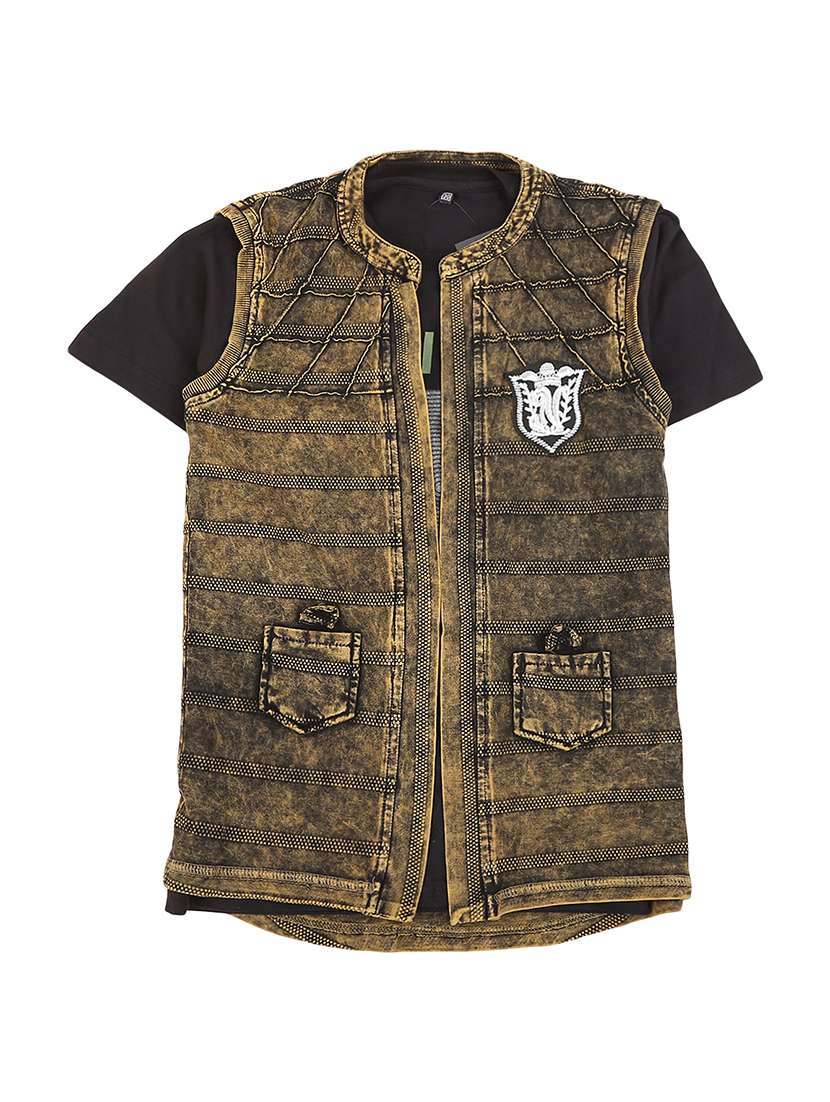 boys mandarin neck printed t-shirt