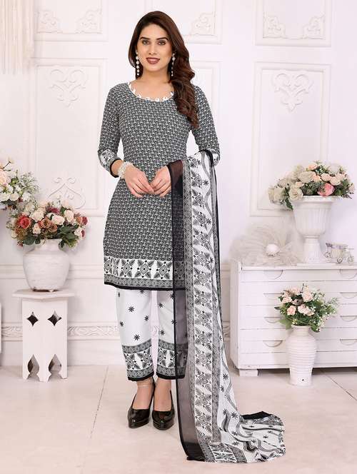 - Look ultra gorgeous in unstitched suits from Anand Sarees and grab these beautiful suits in black colour.