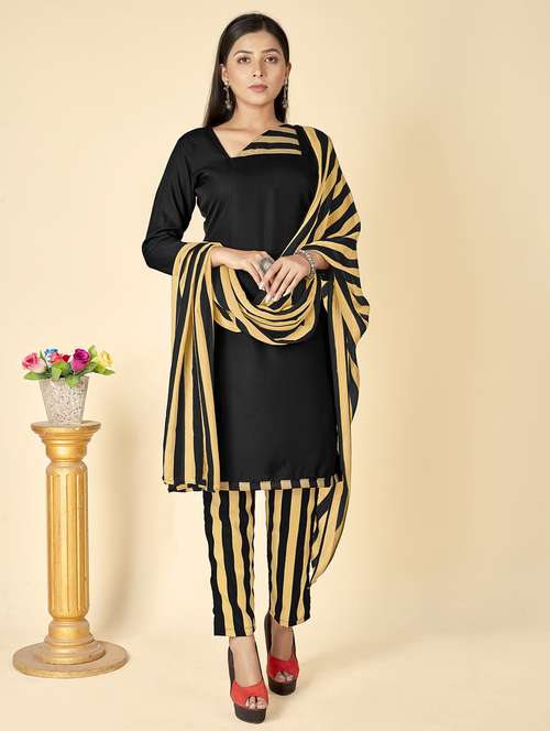 - Look ultra gorgeous in unstitched suits from Anand Sarees and grab these beautiful suits in black colour.