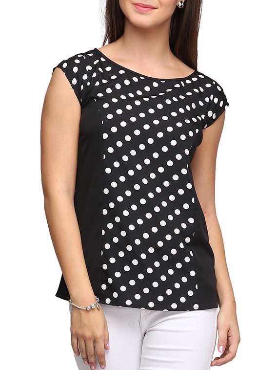 monochrome polka dot print crepe top