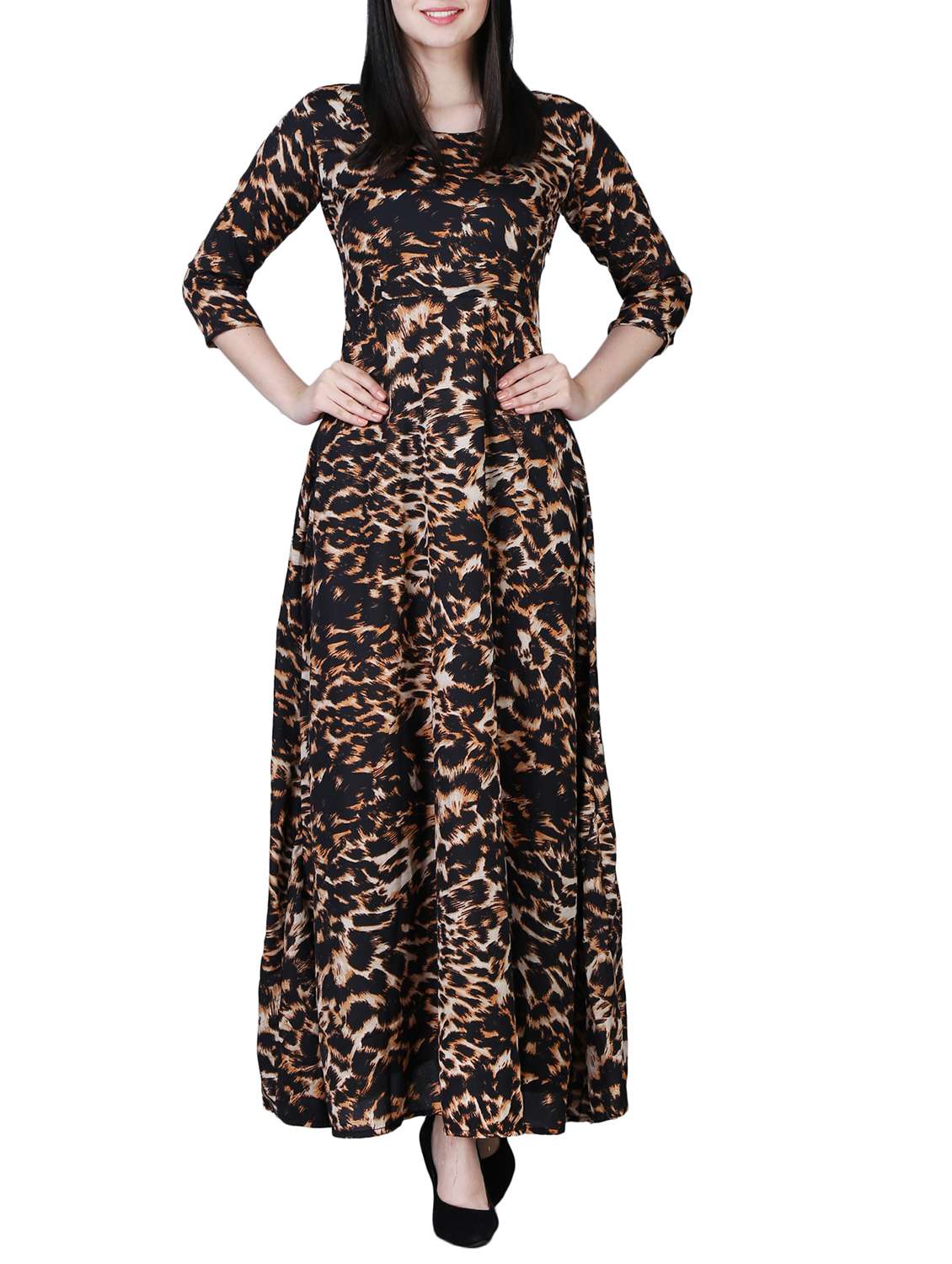 - » round neck animal print maxi dress
