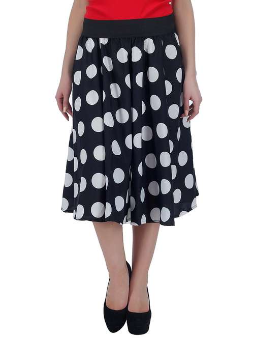 - » black polka dots printed crepe flared skirt