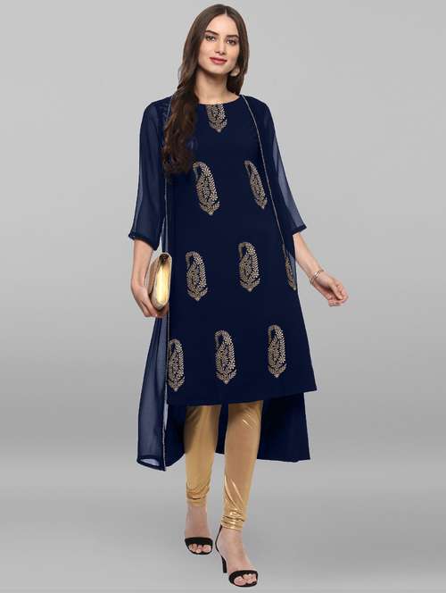 - Grab this beautiful kurta made up of crepe fabric featuring boat neck neck designs.
