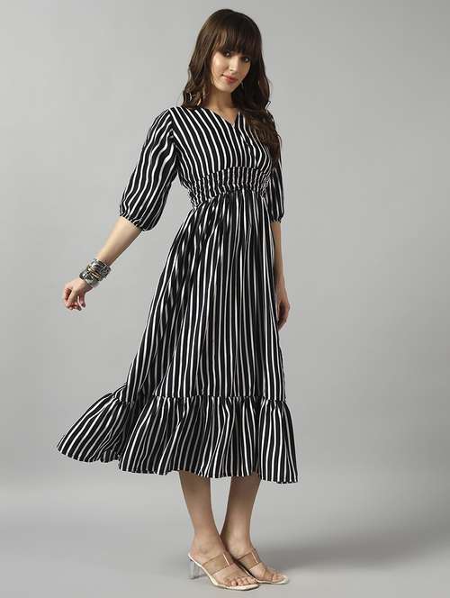 - Dress up in a soothing pattern and don this dress made of crepe material.