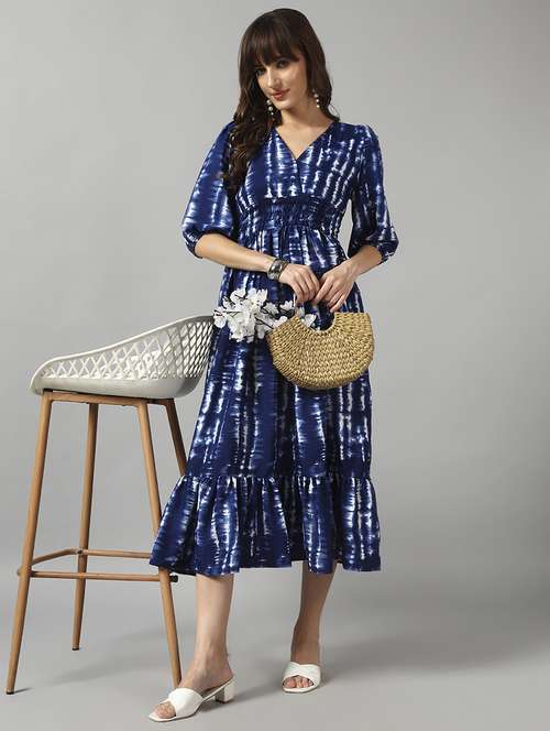 - Dress up in a soothing pattern and don this dress made of crepe material.