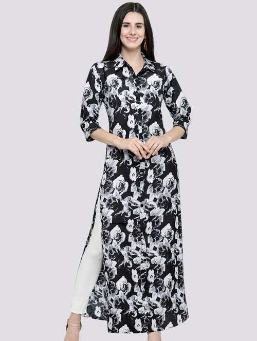 - Grab this beautiful kurta made up of crepe fabric featuring shirt collar neck designs.