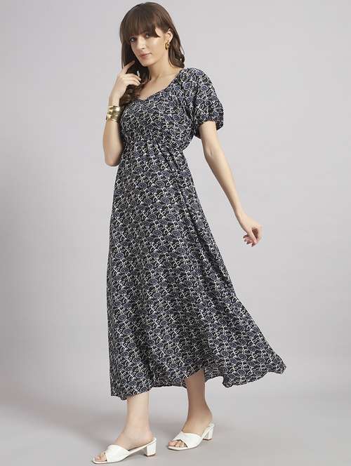 - Dress up in a soothing pattern and don this dress made of crepe material.