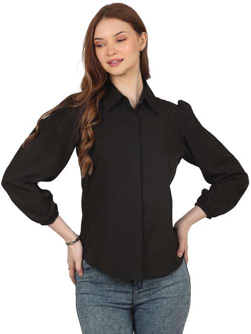 women solid collared puff sleeve shirt - 22061355 -  Standard Image - 1 women solid collared puff sleeve shirt - 22061355 -  Zoom Image - 1