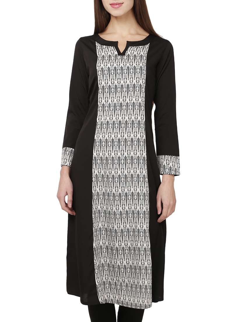 black crepe aline kurta - 13329167 - Very Small Image - 1