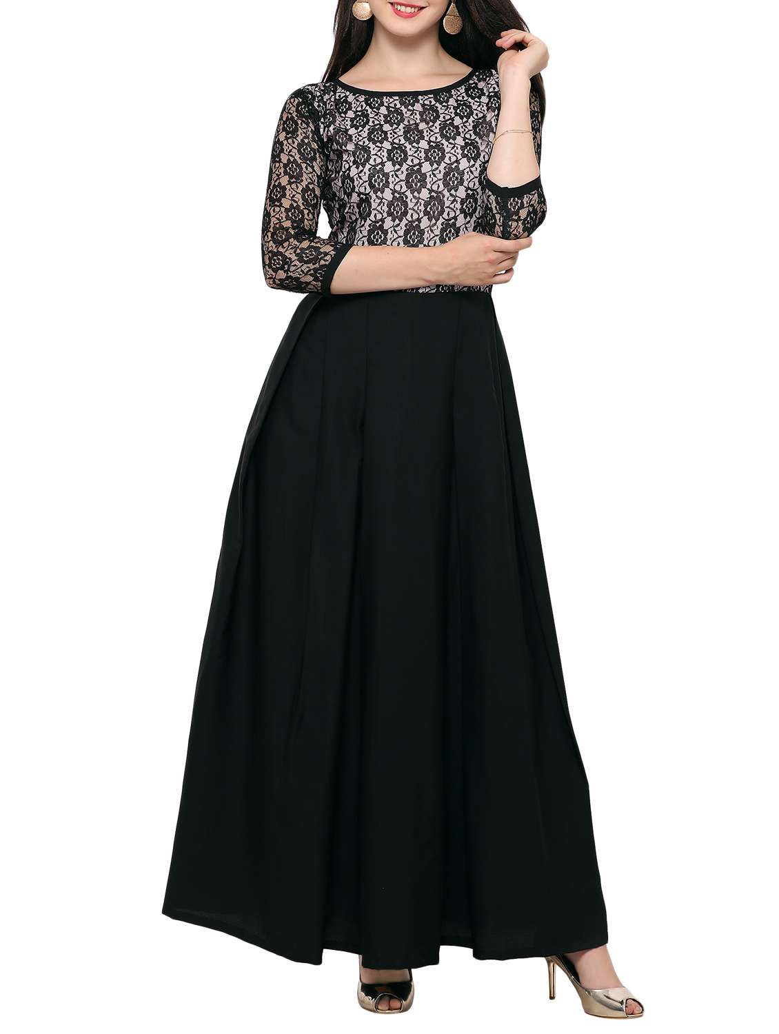 - » laced panel pleated maxi dress