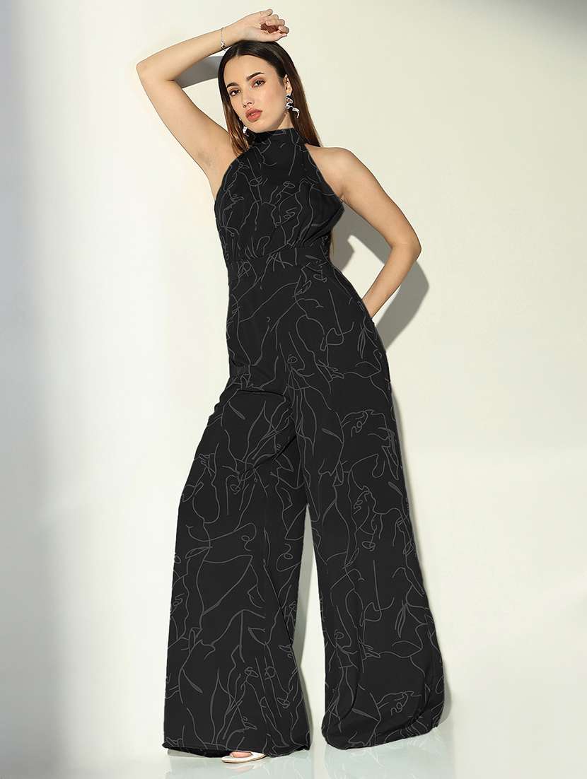 - » women printed halter neck sleeveless jumpsuit