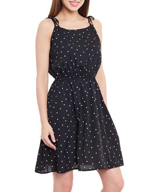 - » black printed poly crepe dress