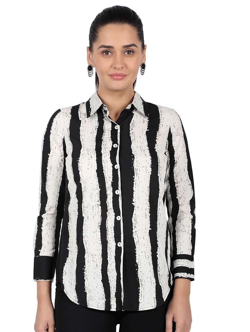 - » curved hem striped shirt