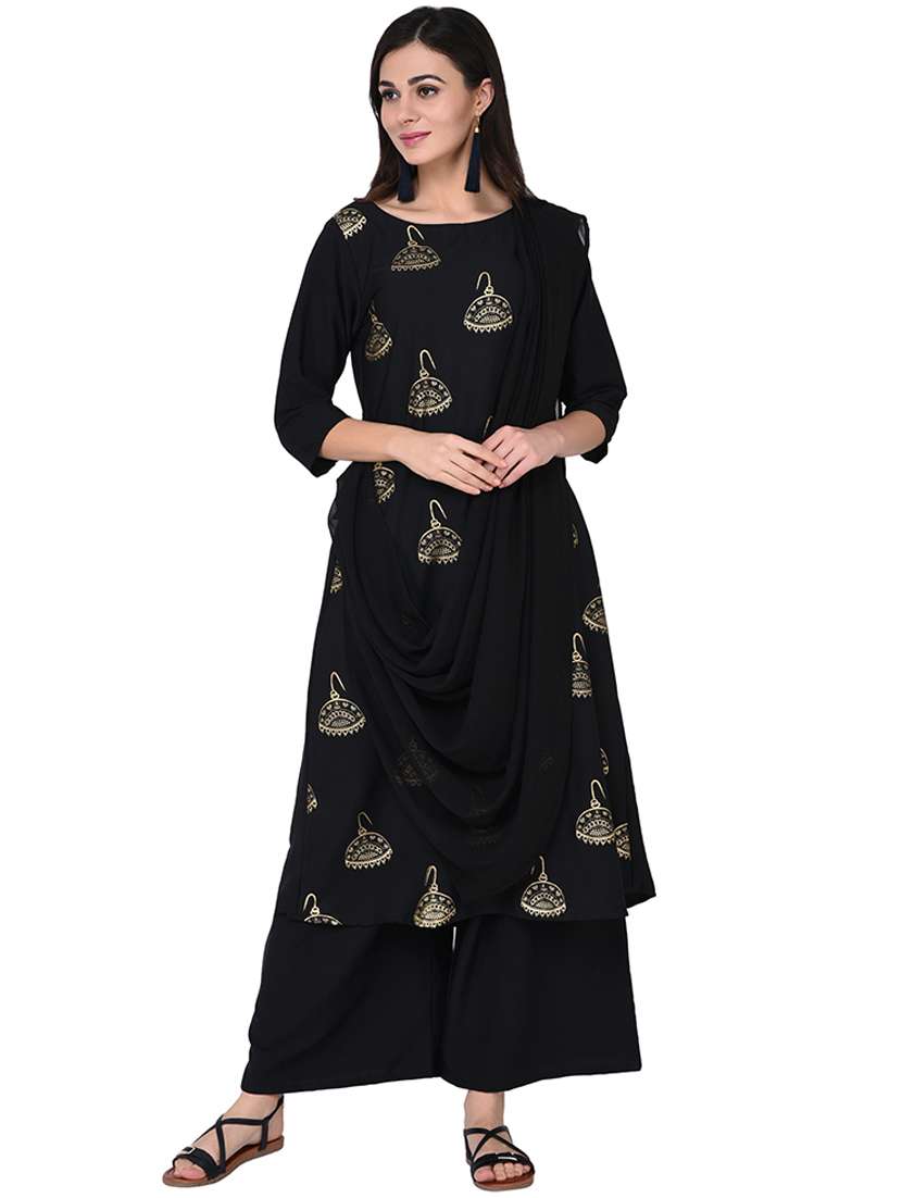 foil printed kurta palazzo with drape dupatta set