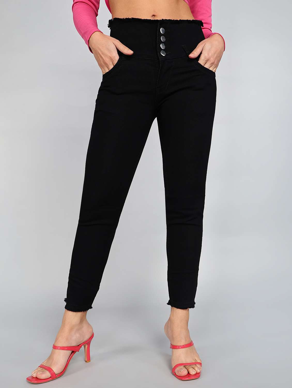 women solid mid rise denim jean