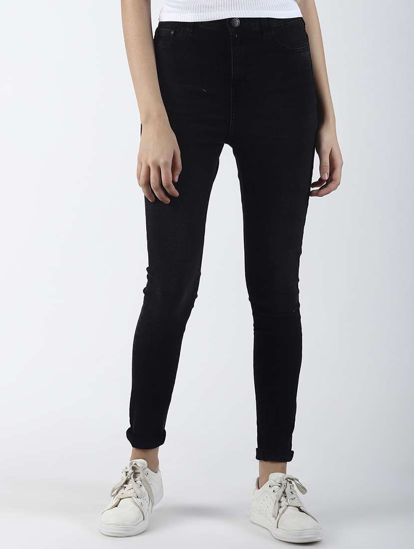 high rise solid jeans