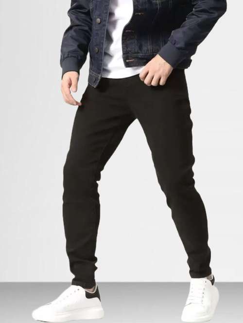 men plain mid rise full length slim fit jeans