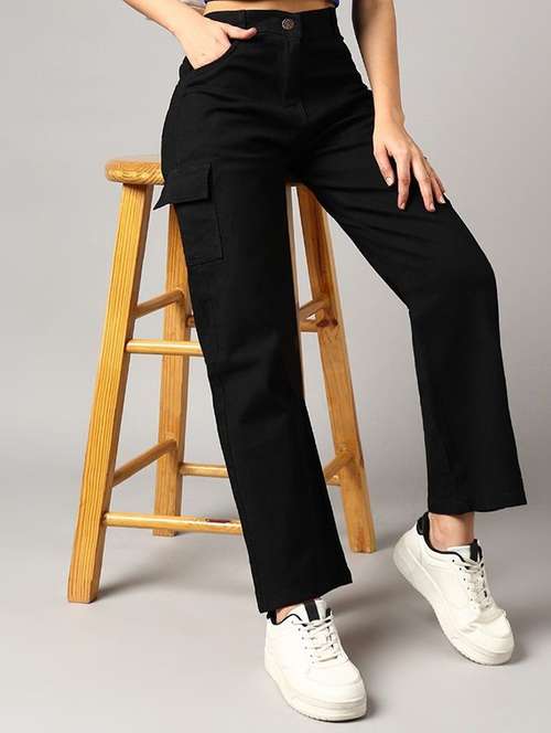 - » women solid high rise denim cargo