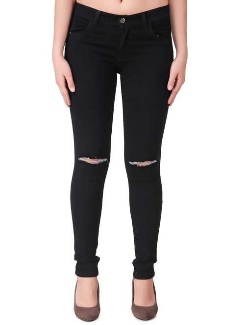 - » black denim knee slit jeans
