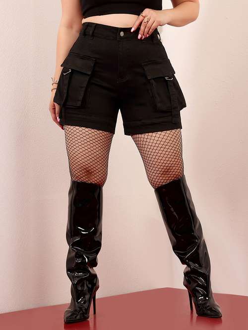 - » women plus size solid high rise cargo shorts